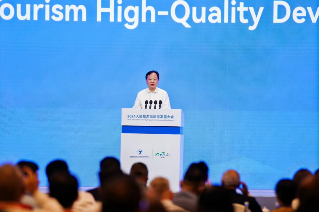 中国旅游研究院院长戴斌在致辞中指出,入境旅游不断是我国旅游工作的重点,也是旅游政策创新的发力点。入境旅游进入快速复苏的新通道、繁荣开展新阶段以后,建设旅游强国,需要顶层设计,需要地方探索,更需要旅游业界的相向而行。戴斌院长强调,安徽,特别是大黄山地区和合肥市不断都是最重要的入境旅游目的地,也是旅游业创新开展的理论策源地和实践探索地,期待安徽在入境旅游开展的新阶段,讲好中国式现代化进程中的文化和旅游新故事,展现美好中国新形象。期待安徽加快建设世界级旅游景区和度假区、旅游城市和街区,加快培育世界一流的旅游企业和服务品牌,培育世界级和国家级旅游新线路,在全面深化改革的进程中着力提升现代旅游业体系,着力提升入境游客的满意度,全面提升国际旅游竞争力。