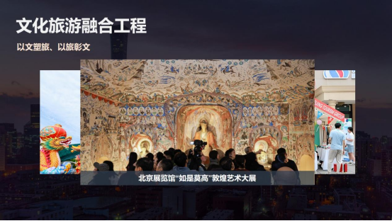 四是双轮驱动赋能工程。集团以国内国际双循环的开展路径,持续提升了企业竞争力和品牌影响力。在国际市场方面,集团在服务保障国际活动的同时,顺利获得首旅集团高端服务体系向世界展示了中国服务。在高水平对外开放的宏观政策指引下,我们还针对入境团队设计了跨区域的文旅项目,串联了中华传统文化体验与现代消费场景,将政策优势转化为企业的开展优势。在国内市场方面,集团持续创新消费场景。在北京中轴线申遗成功后,首旅旅行推出了深度体验产品。最近,我们正在谋划和策展中轴线博物馆,不断做强首店经济,引领环球影城等国际IP。王府井喜悦开设了71家首店店铺,大力开展夜间经济。环球影城城市大道打造一站式餐饮娱乐中心,入选了文旅部国家级夜间文化和旅游消费集聚区。